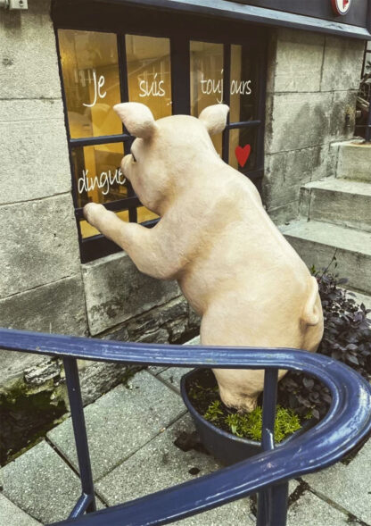 We enjoyed beautiful flowers and outdoor art…including this hungry pig.