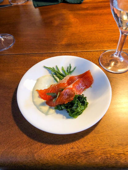 And then there’s the food, which frankly deserves its own post. I’ve had the incredible fortune to have dined at some stellar establishments in my travels, but I’d trade all of those meals in a second for another week of chef Tracie’s cooking. Her ability to produce world-class meals three times a day without assistance in a galley kitchen the size of a shoebox border on sorcery. I heard the food was outstanding, but I knew we were going to be on a boat so I tempered my expectations. Until she served us a gorgeous asparagus custard with shrimp oil and tobiko for the first course of the first dinner.