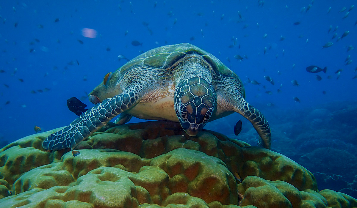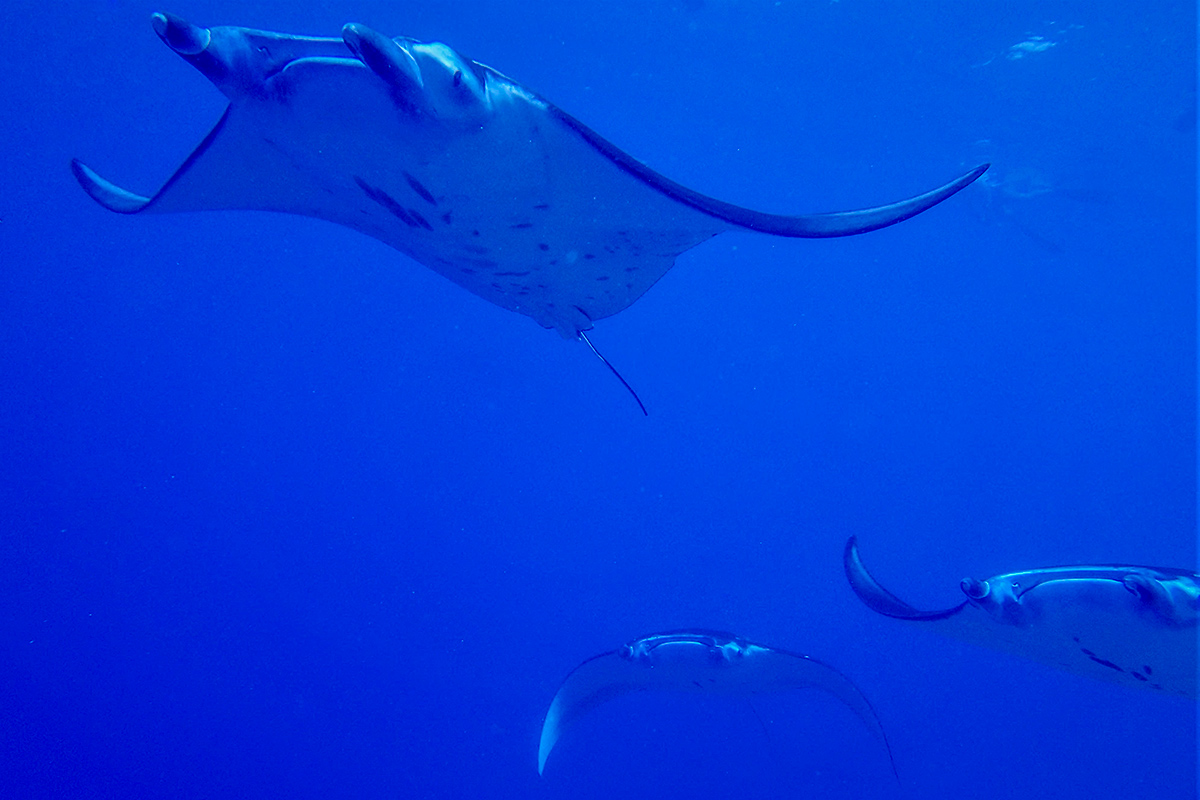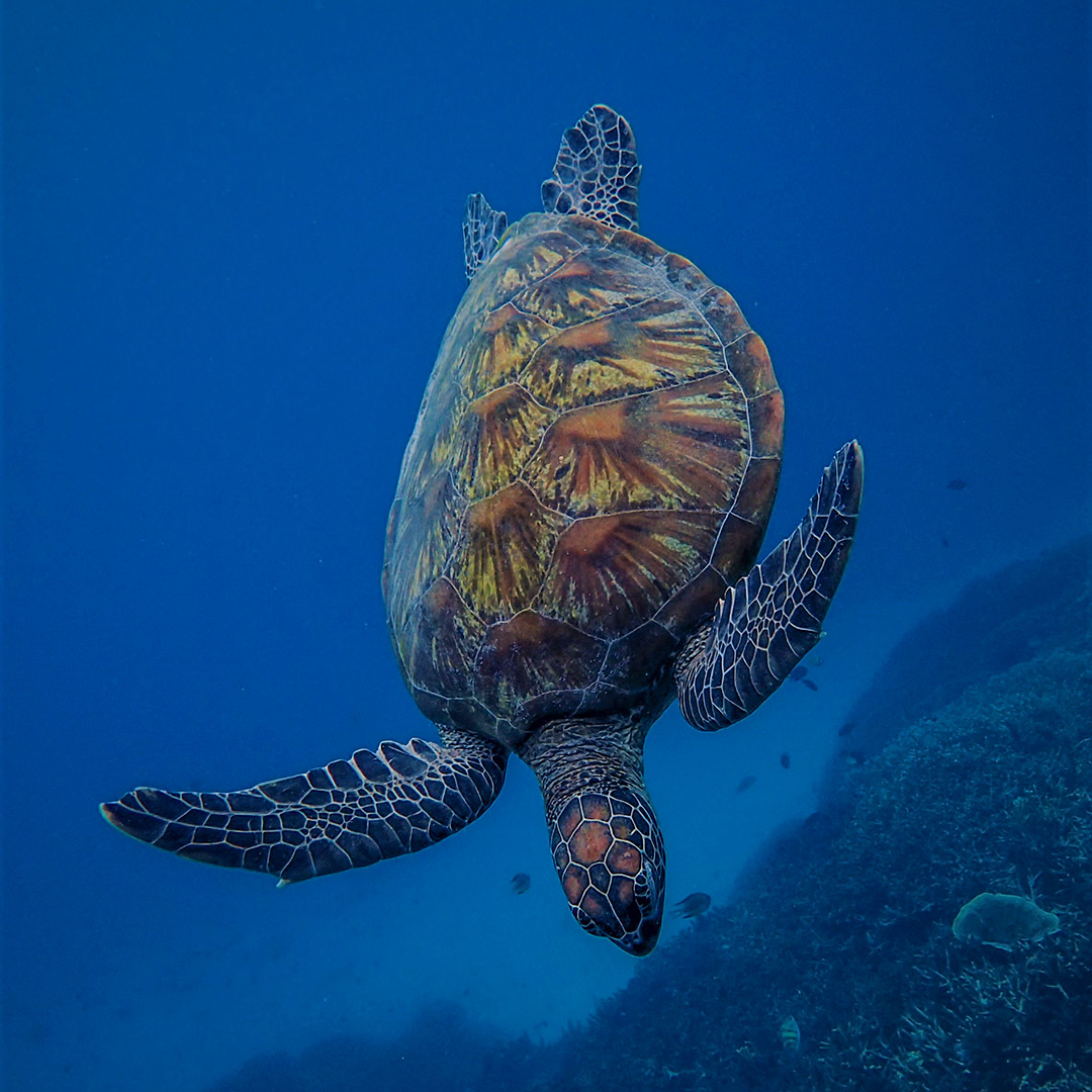 We saw gorgeous coral, sea turtles, manta rays, giant clams, and a myriad of fish. We also had an encounter with an amorous dugong who really liked our zodiac, and we were always on the lookout for pods of dolphins and pilot whales as we rode to each snorkeling destination.