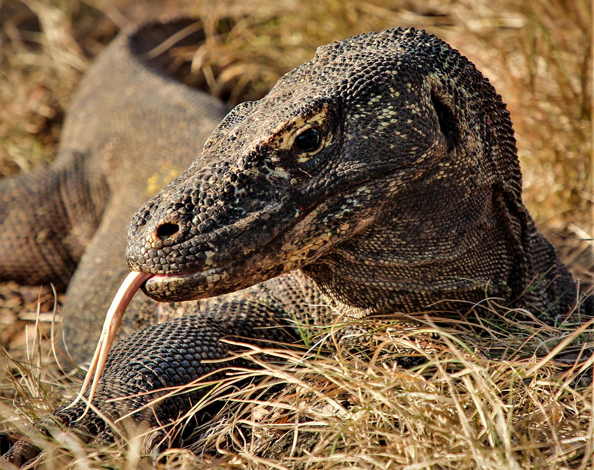 We saw quite a few dragons, both adult and juvenile, during our hike on Komodo Island. Our ranger guide had a very keen eye for spotting them. They were in the tall grass, on the beach, and in the forest. The young ones can even climb trees.