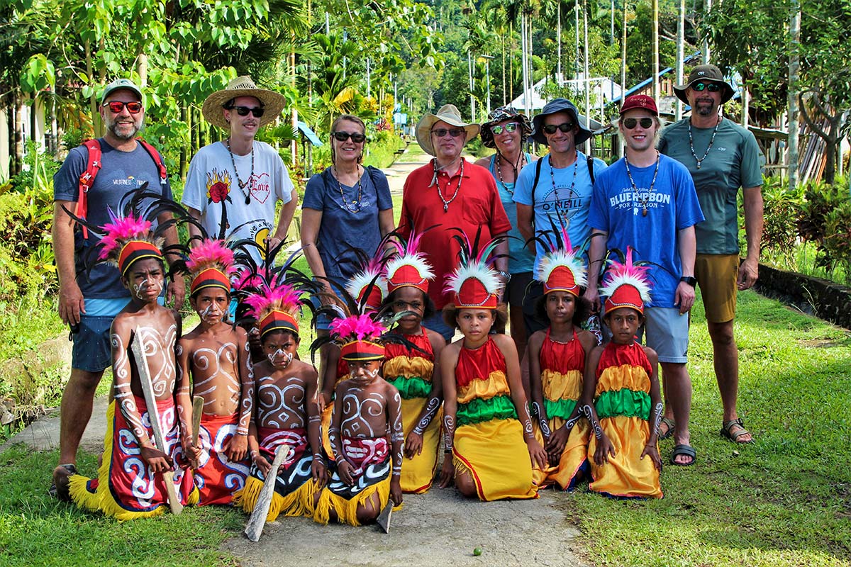 After the ranger obtained permission from the council, we visited a village and were part of a welcome ceremony that included putting our right foot in a bowl on the ground while beads were put around our necks. The boys and girls did a traditional dance and the boys showed us their spear-throwing skills. We did a challenging hike through the jungle to a beautiful waterfall.