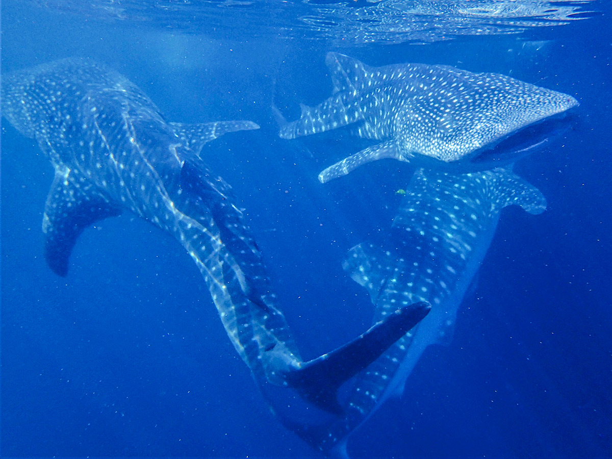 After more snorkeling, paddling, and deserted beaches, it was time to swim with whale sharks! Our trip leader Bob switched it up and wisely left them till last. We arrived in the area where the bagans or fishing platforms were and Bob negotiated the day’s catch from the fishermen, ensuring we had plenty of time with the whale sharks. During our first time in the water, there were five of these enormous fish. And we were so close to them! They really do look like giant sock puppets when seen from above.
