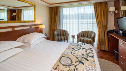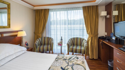 The custom-designed, 140-passenger AmaDante features spacious staterooms ranging in size from 170-255 sq ft, most with French balconies. All staterooms include plush down bedding, complimentary bottled water, terry robes and slippers, marble-appointed bathrooms, complimentary high-speed Internet access, and first-run Hollywood movies. The main lounge is the perfect setting for group gatherings and nightly entertainment and the AmaDante's sun deck and inviting whirlpool provide incredible views of Europe's legendary rivers.