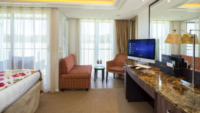 Sister ship to the award-winning AmaLea and AmaKristina, the 156-passenger AmaLucia features comfortable cabins with spacious “twin balconies,” in-room temperature control, large wardrobes, and en-suite bathrooms with multi-jet showers. Dining venues include the elegant Main Restaurant and the Chef's Table, and tapas are available between meals in the colorful Main Lounge. Those looking to stay physically active can head to the fitness room, the walking track on the sun deck, or join a class led by the onboard Wellness Host. You can also grab a bicycle from the fleet and take a ride with a guided tour or on your own. After an adventurous day exploring castles or canals, relax in the swimming pool with its “swim-up” bar or treat yourself to a massage. Nightly entertainment ranges from traditional Bavarian music to modern piano and local quartets.
