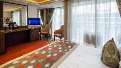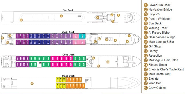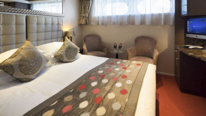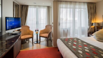 The 164-guest AmaPrima provides a most distinctive river cruise experience. A magnificent glass elevator is one of the unique design elements found onboard, as well as the exclusive “Twin Balconies.” The beautifully decorated accommodations range in size up to 350 square feet. Relax in a heated Sun Deck swimming pool with a “swim-up” bar, or enjoy Chaîne des Rôtisseurs culinary creations. The ship carries a fleet of bicycles and safety helmets free for you to use. The bicycles let you venture out and explore the riverside bikeways or meander through quaint cobblestone streets. The bikes are set up and ready for use as soon as the ship docks. Thanks to the computer provided in your stateroom and high-speed Internet access plus Wi-Fi, you can stay connected with friends and family back home. The exclusive movies-on-demand system offers Hollywood's current releases, a selection of classic films, or entertaining travel videos chosen to coincide with your itinerary. You'll also enjoy a variety of English-language news, sports and satellite TV stations, as well as a selection of music channels. It's all available on your flat-panel TV, and it's completely complimentary.