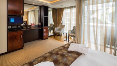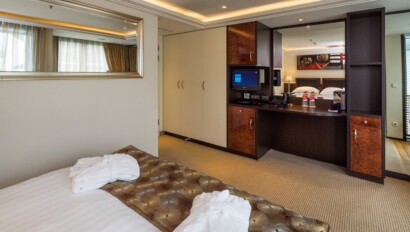 Making her debut in 2011, the 161-passenger AmaVerde shares the distinction of having the largest average stateroom size (214 sq. ft.) in Europe with her sister ship, the AmaBella. An array of dining options is available for your culinary enjoyment. Choose Verde Fine Dining Restaurant, the ships' main restaurant, serving gourmet cuisine, or Bella Cucina Restaurant, the second stylish restaurant, which offers classic Italian fare at dinner. At Erlebnis Chef's Table Restaurant, passengers can watch a private chef prepare a tasting menu in this exclusive 24-seat venue. Guests can enjoy casual light lunch in the Main Lounge, or private dining in the Wine Room, seating up to six guests. On select days, enjoy lunch on the Sun Deck. There is also a heated pool and whirlpool, walking track, putting green, fitness room, sauna, and spa, and the ship carries a fleet of bicycles and safety helmets free for you to use. Thanks to the computer provided in your stateroom and high-speed Internet access plus Wi-Fi, you can stay connected with friends and family back home. The exclusive movies-on-demand system offers Hollywood's current releases, a selection of classic films, or entertaining travel videos chosen to coincide with your itinerary. You'll also enjoy a variety of English-language news, sports and satellite TV stations, and a selection of music channels. It's all available on your flat-panel TV, and it's completely complimentary.
