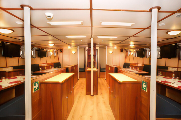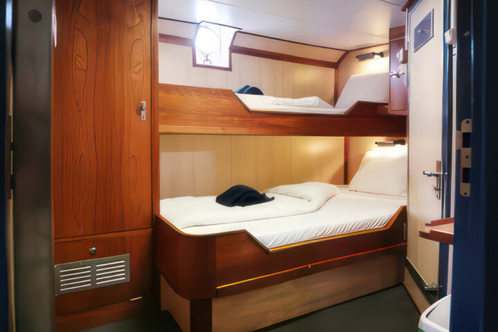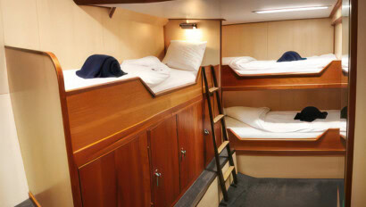 Originally built as a herring lugger, this sturdy vessel was rebuilt as a three-mast passenger sailing schooner in 1994, and underwent a complete refurbishment in 2011. With 16 cabins, she has a passenger capacity of 33 and a staff and crew of 12. Well-suited to sail in the Svalbard and Greenlandic waters, her communication and navigation equipment has been completely renewed according to the latest SOLAS regulations. Simple but tasty meals of international cuisine are served buffet style in the dining area, and small but cozy cabins each have a porthole and private shower and toilet. With ample open deck space for wildlife viewing, the Rembrandt is ideal for cruising among small islands and into hard-to-reach nooks and crannies. There’s also a bar, sitting area, and reading area, and she carries two Zodiacs for onshore excursions.