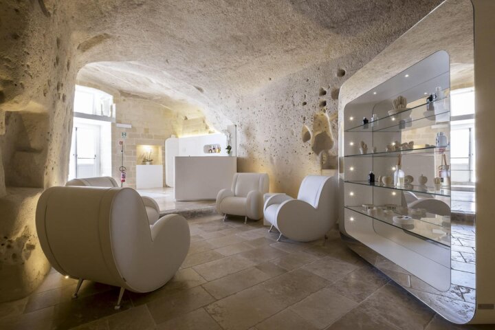 Set in the center of the sassi, a UNESCO World Heritage Site, this charming 35-room "cave" hotel is an excellent place to stay while experiencing one of the oldest cities in the world. Some of the guestrooms have been dug into the tufa stone, while others are masonry-built with wooden roofs, but all are bright with modern furnishings. There is also a spa (in a cave, of course), with a swimming pool carved right into the rock.