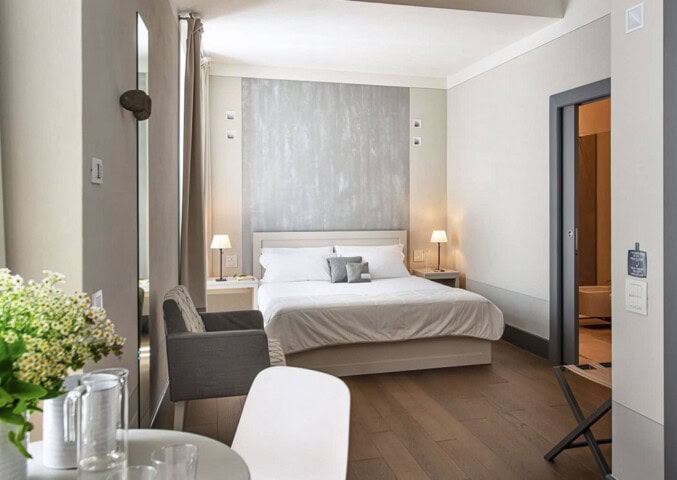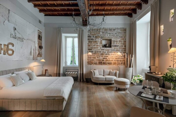 This ultra-modern 13-room hotel is set within a restored medieval tower in a fantastic location right in the heart of the “Citta Alta,” just steps from the central square. Guest rooms are clean and spacious with chic decor, comfy beds, and well appointed bathrooms. The staff is kind and efficient, and the buffet breakfast features homemade jams to go with the wonderful croissants and breads. A caveat: the cathedral is just a block away and the bells start ringing at 7:30 am! (You weren't planning on sleeping in, anyway, were you?)