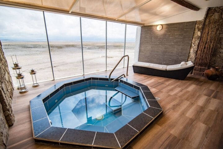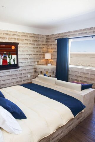 This hotel is located near the salt flats of Uyuni and has a unique quality—it's built almost entirely out of salt! The lobby is rustic and welcoming, with salt floors, casual lounge areas, and fireplaces. The guestrooms are spacious and comfortable, and have large windows that bring a lot of natural light. The hotel has a nice restaurant as well as a spa and hot tub.