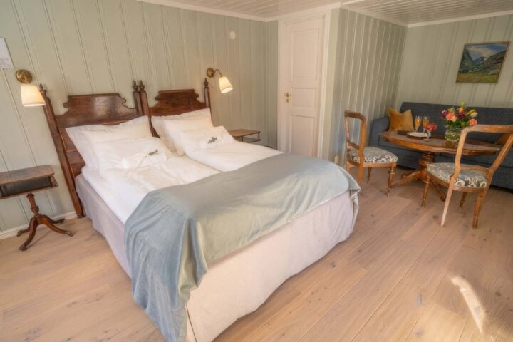 This delightful hotel has a long history dating back nearly 200 years! Originally a coaching and posting inn, it offers just eight guest rooms, all decorated in traditional decor and featuring modern amenities. It's just a mile from the famous Borgund Stave Church. Note: While this small hotel is certainly historic and quite charming, there is one twin-bedded room with just a half-bath; a private full bath and shower is just down the hall.