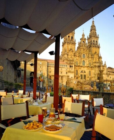 Adjacent to Santiago's soaring Romanesque cathedral is the 5-star Parador de Santiago de Compostela, one of the oldest hotels in the world. Staying at this parador brings you into the heart of Santiago's rich history. It's location right on the central square makes it a great place for people watching—sit with a glass of wine looking out over the square and the cathedral of St. James as pilgrims reach the conclusion of their long journey, a moment of extraordinary emotion. The breakfast buffet is legendary here, from chocolate churros to fine Serrano hams and cheeses.