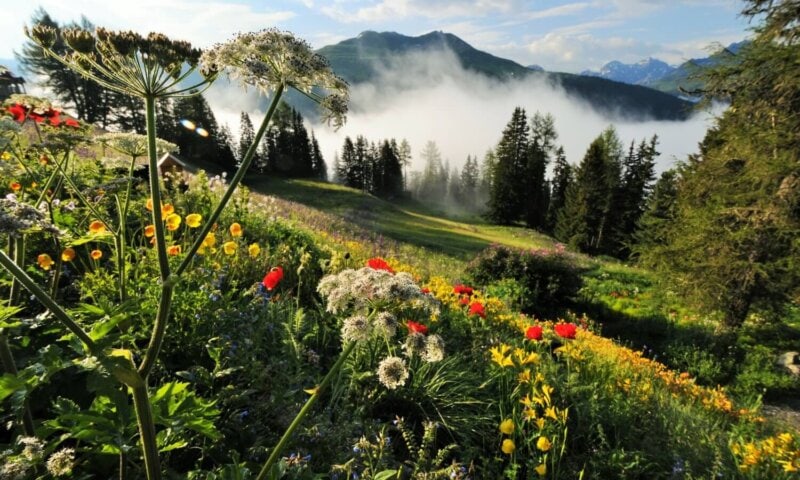 This mountain “aerie” sits on a sunny shelf high above the resort town of Davos, and is reached by a short funicular ride up the mountainside. Its picture-postcard alpine views and pure mountain air are complemented by the staff's warm and friendly Swiss hospitality. Guest rooms evoke the charm and feel of turn-of-the-century Davos, with the added pleasure of modern comforts (but no TV). Be sure to sit on the terrace with a drink and catch the wonderful afternoon light.