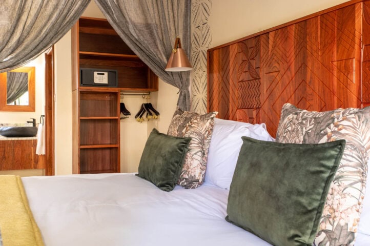This boutique lodge really lives up to its name for being an oasis in the region. Shongwe Oasis has 19 rooms set amid lush gardens and teak trees, all centered around the infinity pool. Each room has spacious bathrooms, comfy beds, and wonderful views of the garden. A bar and restaurant serve up delicious cuisine and their on-site spa is perfect for those traveling long distances. A unique perk of Shongwe Oasis is the lookout tower, one of the first of its kind in the area. The tower grants sweeping vistas accessed from two viewing platforms, and a clever pulley system allows you to order and enjoy drinks without missing a moment.