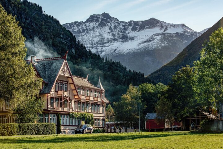 A hotel since 1891, the Union is nestled into the fjord village of Oye by the shores of Hjorundfjord. Each of the 27 guest rooms are individually furnished with antiques and named for notable former guests, which have included Kaiser Wilhelm, Sir Arthur Conan Doyle, and Henrik Ibsen. The guest rooms and bathrooms are small, as befits the era in which the hotel was built, but the entire hotel radiates history and has a majestic natural setting.