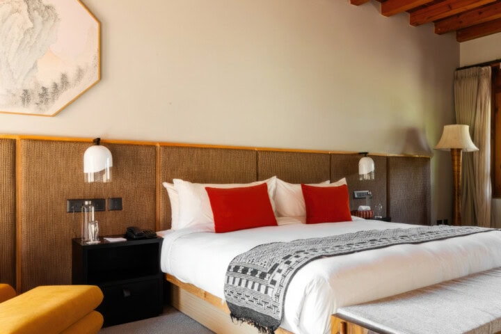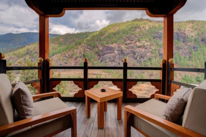 Located on 10 serene acres in the green Paro Valley, the deluxe Zhiwaling is a wonderful example of traditional Bhutanese architecture, every bit of it hand-carved in Bhutan by local craftsmen. The guest rooms are airy and large, with balconies opening onto views of world-famous Taktsang Monastery. At the hotel’s Menlha Spa, enjoy a sauna or a Bhutanese-style massage, while the tea room offers local safflower and cinnamon herb teas. The hotel has two restaurants, plus the Mad Monk bar, and has appeared on Conde Nast Traveler’s annual “Gold List.”