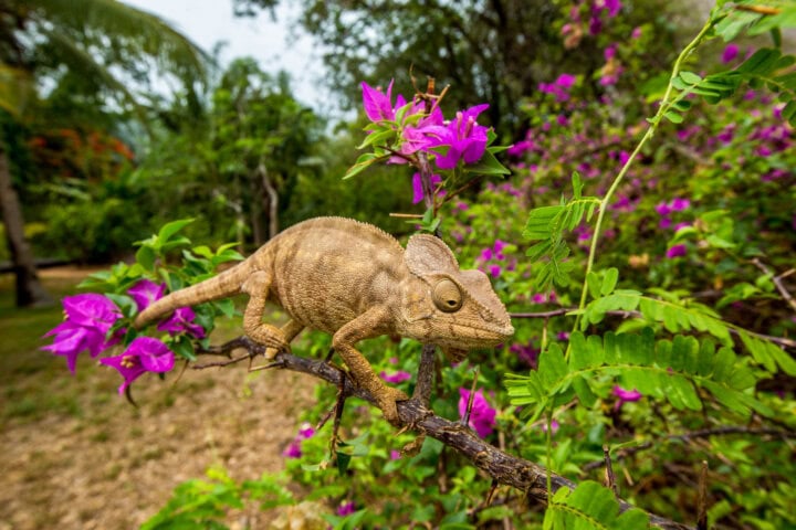 A deluxe Relais & Chateaux property in its own private wildlife reserve on Madagascar's coast, Anjajavy is a nature lover's dream. Private air-conditioned villas are scattered along a pristine beach, surrounded by dry deciduous forest, a unique tropical ecosystem that shelters a multitude of wildlife, from the common brown lemur to the Coquerel's sifaka or tiny nocturnal mouse lemur. Reptiles range from amazing native chameleons to leaf-nose bats, and the birdlife is prolific. With luck, you could see Madagascar's largest carnivore, the fossa, a member of the mongoose family. With activities tailored to your taste, enjoy abundant lemur-viewing, night walks, sunset boat rides, snorkeling, and kayaking in the mangroves. Exclusive Anjajavy Lodge is accessible only by light aircraft.