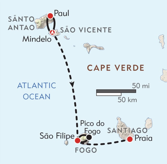 "If you want to be completely off the tourist treadmill, this is a trip for you! Each island was different; from the lush, fog shrouded valleys and cobblestone paths of of Santo Antão, the black sand and lava strewn beaches of São Vicente, the picturesque hillside villages and the island's fishing culture with boats as practical as they are colorful. Of course. no trip would be complete without a volcano summit! I never felt each hiking day was the same and there was a good mix of physical and cultural moments."