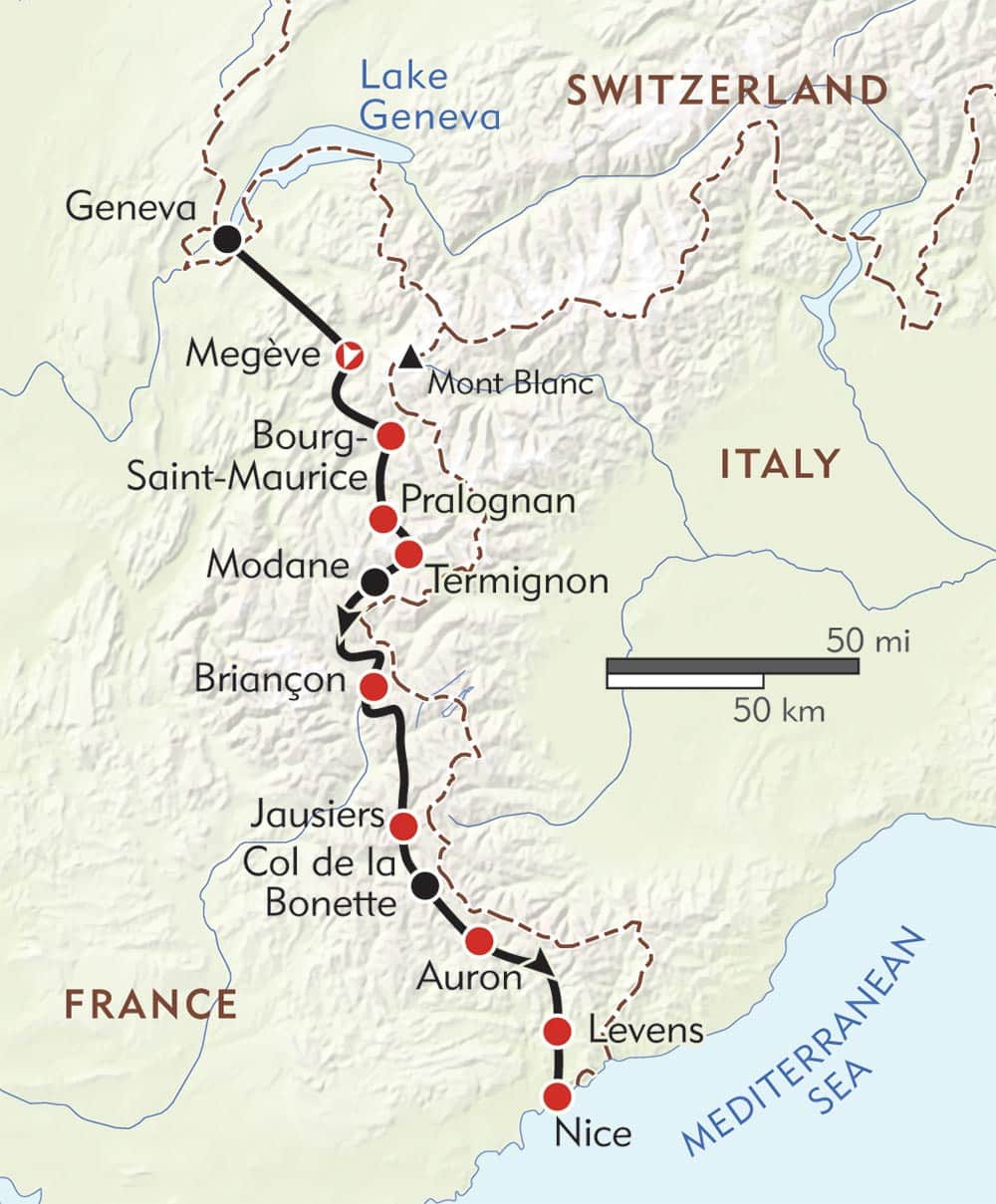 Hike from Mont Blanc, with its immense south face, to the palm-fringed beaches of the Côte d’Azur, where the Maritime Alps plunge into the Mediterranean. Our first hike brings breathtaking views of Mont Blanc (15,770') from a high ridge. Heading south, we follow trails through age-old villages and alpine meadows where cowbells echo and blue gentians bloom. Farther south, we follow the legendary GR5 trail across remote national parks, then enter brightly colored hill villages that announce the Mediterranean is near. Contouring the GR5 trail across the last of the Alps before they drop to the sea, we arrive on the coast and head for a celebratory dip in the sea. Our unique French adventure has been featured as one of Outside magazine’s “Trips of a Lifetime.”