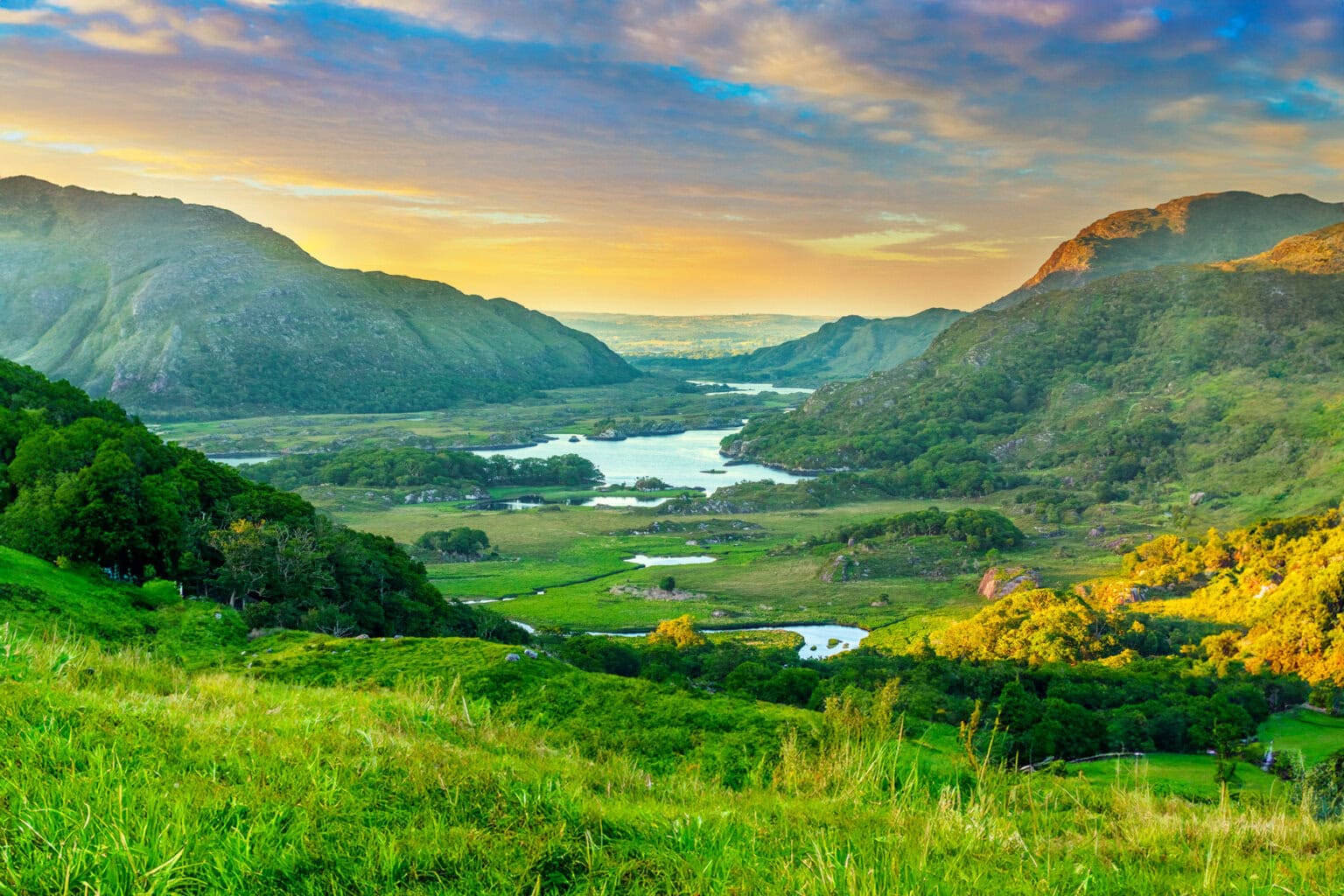Arrive in Cork and head out with your private guide to the colorful little town of Kenmare (“Little Nest”) at the head of Kenmare Bay. Enjoy a warm-up hike on the breathtaking Sheep’s Head Peninsula, following ancient byways though tiny field systems and intricate shorelines. The next day, explore the Beara Peninsula on a hike across a high ridge that divides Cork and Kerry, with stunning views of the bays along the Atlantic. Options include sheepdog herding, a farm visit, or a slow food adventure.