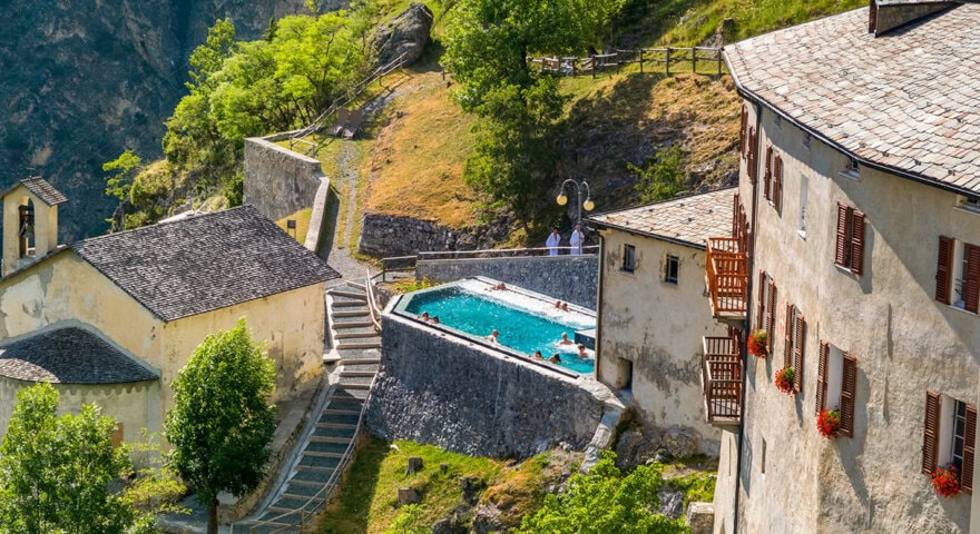 After exploring medieval Bergamo in the foothills of the Italian Alps, we head into the green Valtellina Valley to see the World Heritage-listed petroglyphs at Valcamonica. The Valtellina is a land of traditional flavors—typical dishes include pizzoccheri (a buckwheat noodle), polenta taragna, and delicious alpine cheeses like casera, bitto, and scimudin. From our hotel in a stunning mountainside location, we follow a trail down to the medieval town of Bormio, renowned for its natural hot springs, which also fuel the spa baths of our Bormio hotel.