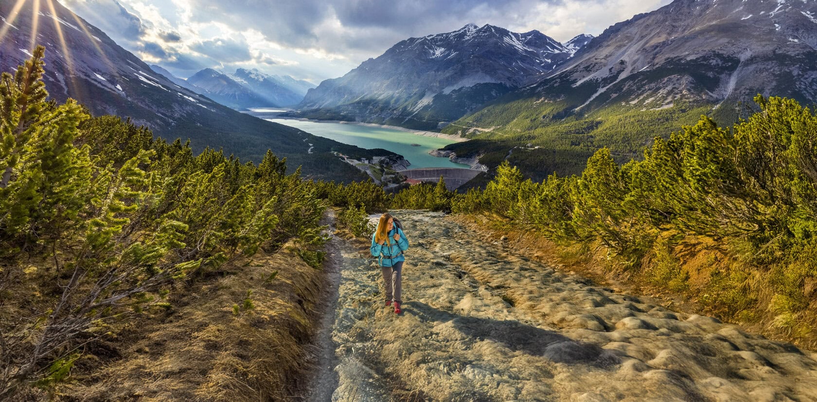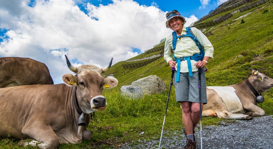 Our hike in the Valle di Fraele leads to a wonderful “alm,” a mountain chalet where cattle graze, and to the beautiful alpine village of Livigno, close to the Swiss border and possessing an “end of the road” ambiance. We hike in the pristine wilderness of Swiss National Park, the oldest park in the Alps, then take the train to Davos. A funicular ride carries us up to our charming and remote mountain resort, and the next day we set out on a breathtaking ridge hike from the hotel.