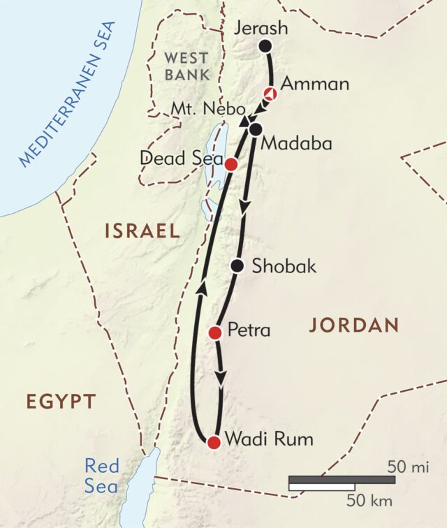 Fabled Petra, long-lost city of the Nabateans, Jerash, a fabulously preserved Roman city, the great Crusader castle at Kerak—the ancient legacy of Jordan is rivaled only by the stunning beauty of the landscape, exemplified by the stunning desert canyon of Wadi Rum. On this Private Journey, take in the extraordinary wonder of the “rose-red” city of Petra, a desert fortress carved out of craggy rocks in a remote canyon in the 3rd century BC, forgotten by the outside world for 1,000 years, then rediscovered in 1812 by a Swiss explorer. In addition to Petra, Jerash, and Kerak, your journey also includes an overnight at a tented camp in Wadi Rum, haunt of T. E. Lawrence. Throughout the trip, enjoy the leadership of a private English-speaking guide, wonderful accommodations, air-conditioned vehicles, and lots of wonderful interactions with the Jordanians, among the most hospitable people in the world.