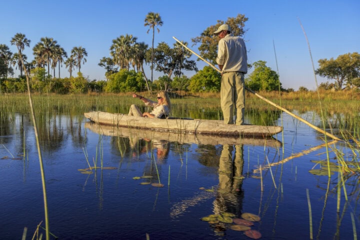 Crossing back into Namibia, we enter the far-flung Caprivi Strip, long off-limits to safari travelers but renowned for its abundant wildlife, navigable waterways, and large stretches of national park. From beautiful Nambwa Tented Lodge, our days are filled with game drives and boating on the Kwando River.