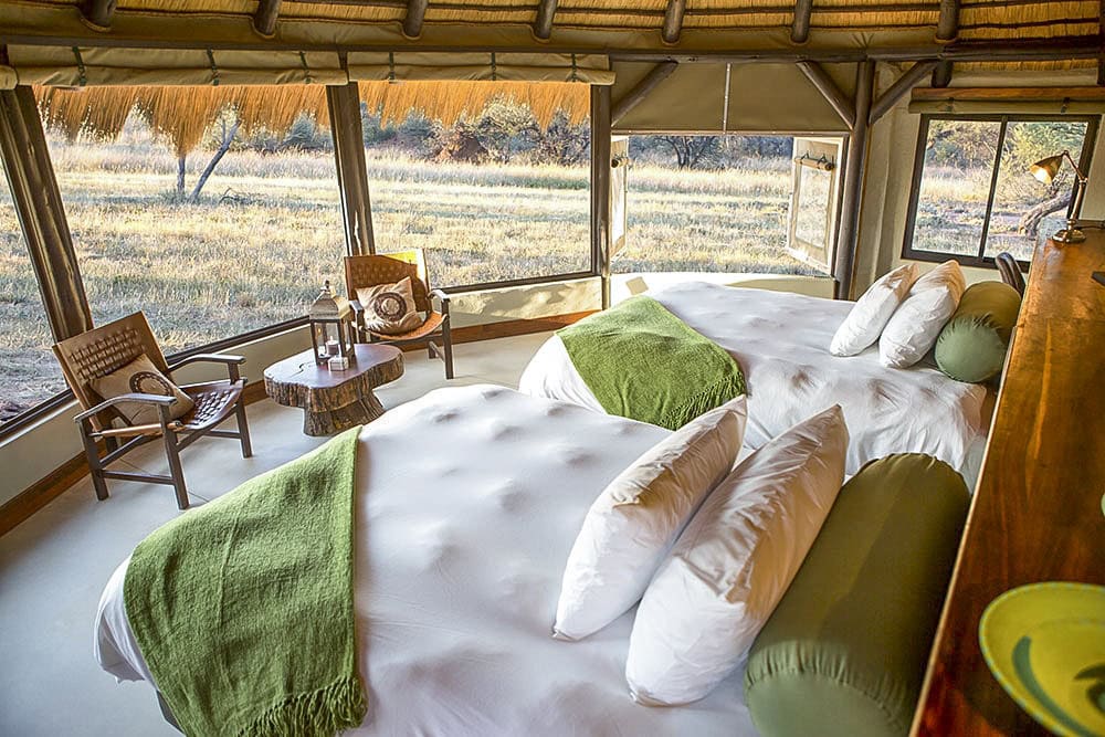 We enter the world of one of Africa’s oldest cultural groups. Namibia’s Ju/’hoansi (San) people. Here we enjoy a fascinating bush walk with San hunters on their traditional land. After viewing World Heritage rock art in the Tsodilo Hills, we move to secluded Nxamaseri Island Lodge in Botswana’s isolated northern Okavango Delta to safari by canoe, a wonderfully quiet way to explore.