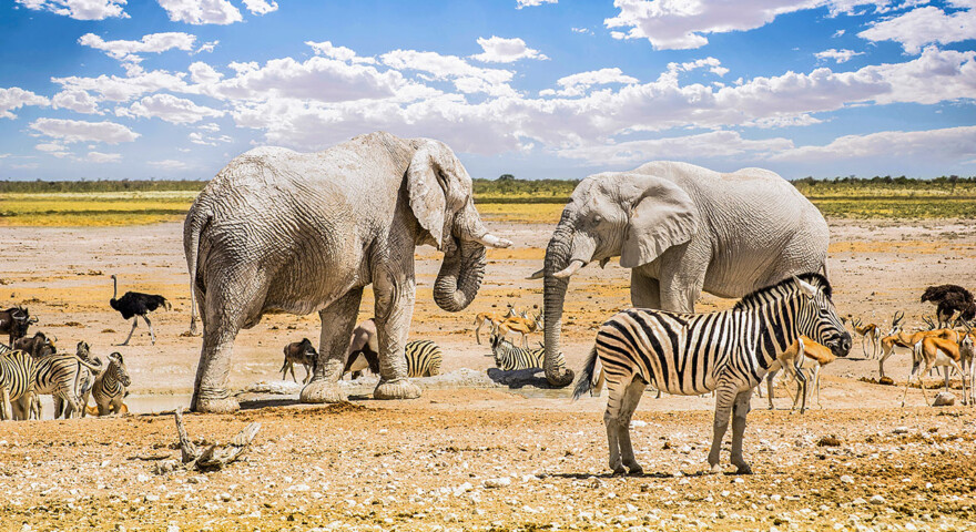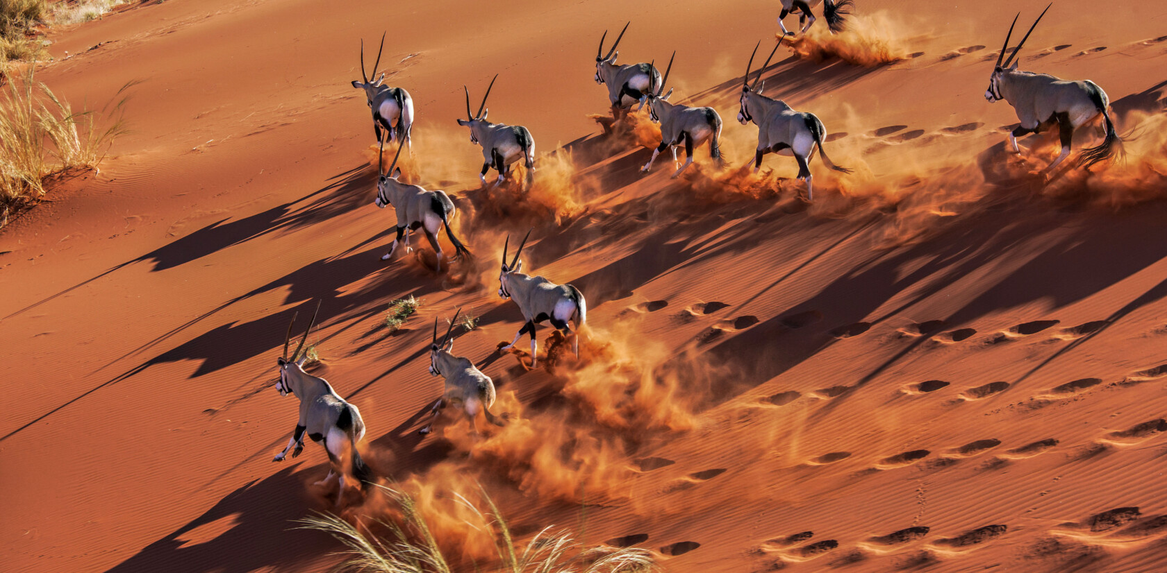Namibia is known for its utterly surreal landscape but it also has fantastic and rare wildlife, including the largest population of free-roaming black rhino in Africa, the highest cheetah population in the world, and a population of desert-adapted elephant. Our safari will have you tracking rhinos on foot, climbing the colossal Sossusvlei dunes, looking for wildlife on Etosha’s salt pans, and hiking the Tok Tokkie Trail across the desert, with nights in “dune beds” beneath the star-studded sky in Africa’s first Dark Sky Reserve. Along the way, enjoy a wonderful diversity of activities, special access to private concessions and wildlife reserves, and accommodations as unique as Namibia itself.