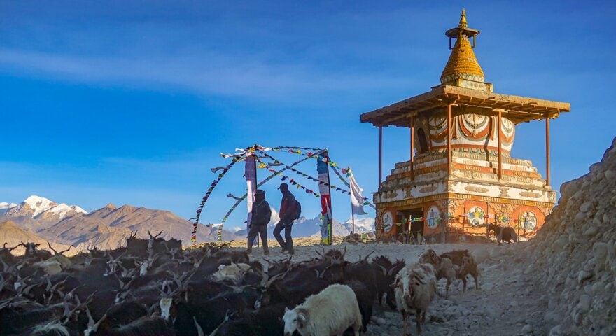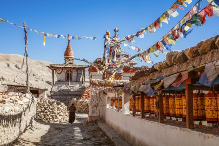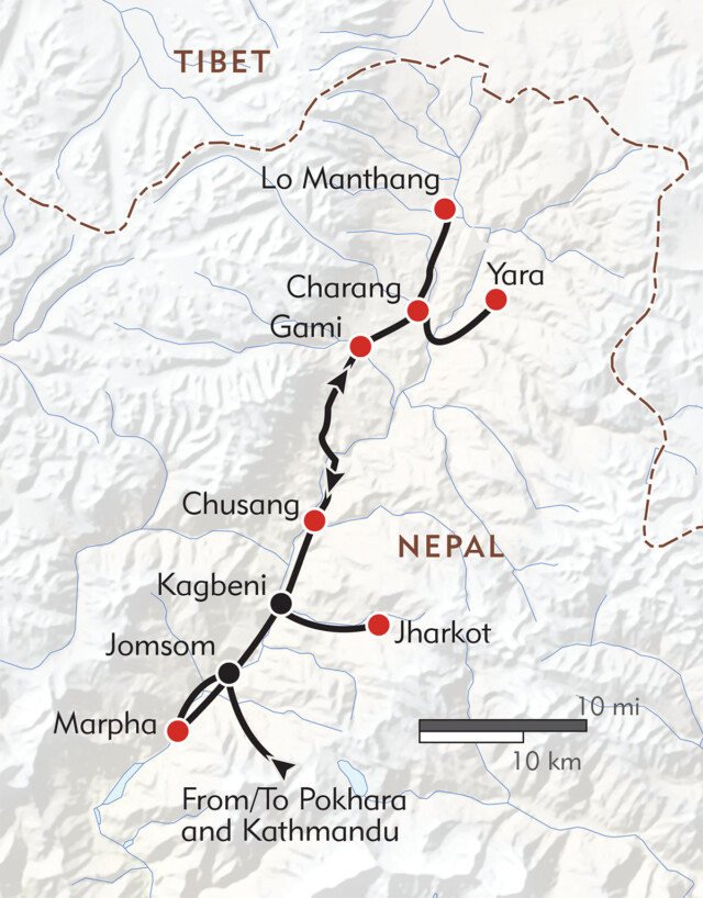 Come with us for an insider's experience of Mustang, the once-forbidden Kingdom of Lo, isolated on the edge of the Tibetan Plateau. Part of Nepal since the 18th century, Mustang is a time capsule of ancient Tibetan heritage on what was once a vital trade route from Tibet to Nepal. On day hikes and 4WD travels, we'll explore whitewashed cliff villages and eerie “meditation sky caves” surrounded by Mustang's otherworldly moonscape of rock chimneys and ravines flanked by majestic snow peaks. We've timed our journey for Lo Manthang's multi-day Tiji Festival, with its chanting monks, clanging cymbals, and leaping masked dancers—it's an incredibly colorful event in one of the most extraordinary places on Earth.