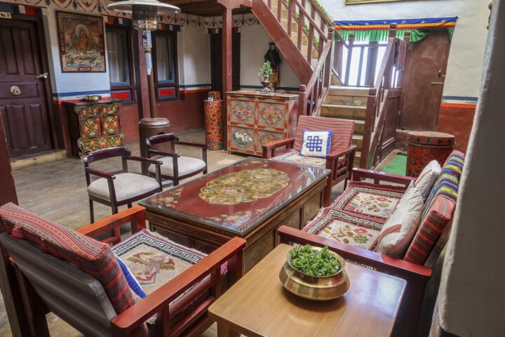 Our lodges in Mustang are rustic but comfortable, owned and operated by local Mustang families. They are a wonderful way to experience local hospitality and gain an insight into the lives of the local people. There are basic toilet and washing facilities, some with Western-style toilets and some with squat-style toilets. Hot water may not be available at every lodge. We provide you with good quality sleeping bags with liners for extra comfort at all of the lodges. Our crew will be equipped with camping gear in case we need it to camp. One of the wonderful benefits of staying in these lodges is the chance to interact with local Mustang families, enjoy cultural encounters with these welcoming mountain people, see them milking their yaks, churning butter, weaving, and going about the everyday chores of traditional life in a remote Himalayan village. On Days 8-10, we stay at the Royal Mustang Resort, arguably the nicest hotel available in Upper Mustang. Each room has stunning views of the surrounding mountains. In Kathmandu and Pokhara, we'll stay in comfortable hotels with modern amenities in central locations.