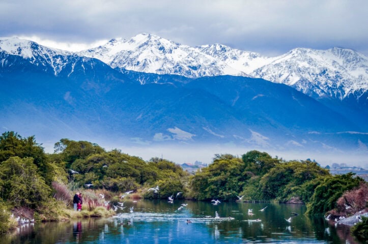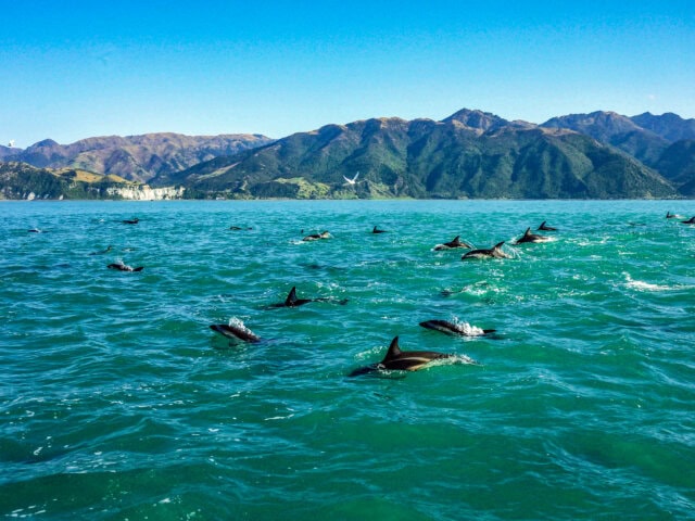 From Christchurch, we take the Coastal Pacific train to the enchanting Kaikoura Coast, where we’ll board a boat and snorkel with playful dusky dolphins (wetsuit, mask, snorkel, and fins provided), or just watch their leaps and backflips.