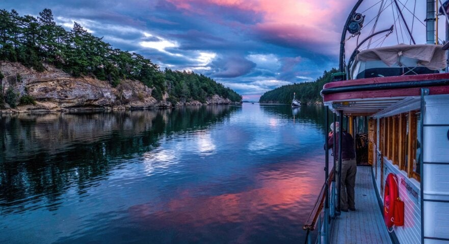 The coastlines of Washington and the San Juan Islands are a charming world apart filled with fascinating wildlife. Explore the best of this pristine realm aboard a small "gentleman's yacht" that carries just 8 or 12 passengers. On a six-day cruise, sail from Bellingham, crossing the San Juan channel to explore some of the 130 small islands that dot the area. Kayak alongside rocky cliffs and to small islands, walk along mossy beaches, and hike through old-growth forests to mountain peaks with incredible views of the San Juan archipelago. Traveling by small boat is the perfect way to navigate into hidden bays where large boats can't go, and you'll savor fantastic sea-to-table cuisine from the on-board chef. There is nothing quite like watching for whales, orcas, dolphins, and eagles from the deck of this historic vessel. Join us!