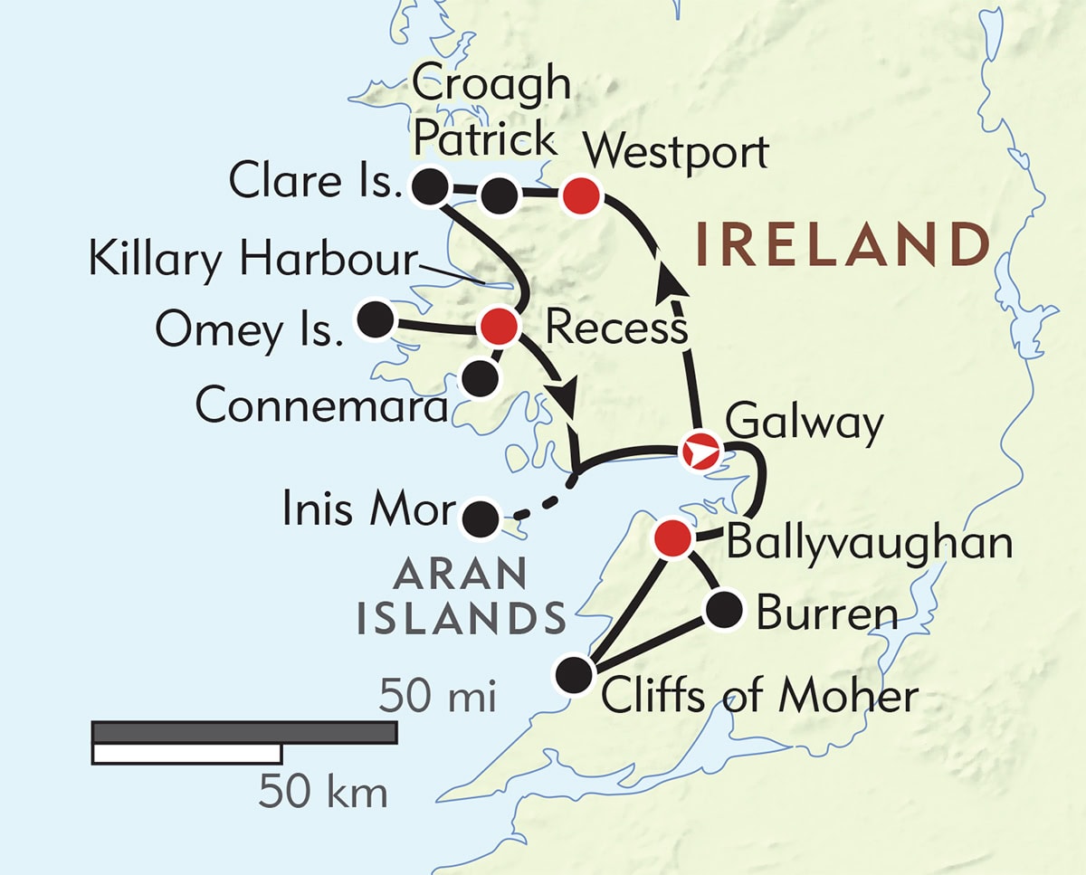 The long western coast of Ireland is blessed with islands, peninsulas, fishing villages, and the most stunning sea cliffs in Europe. With our legendary Irish Trip Leaders, we’ll explore this stronghold of Irish culture with hikes atop the breathtaking Cliffs of Moher, through the moonscapes of the Burren, with its Bronze Age burial sites, along pilgrim trails on Croagh Patrick, Ireland’s holy mountain, and in wild Connemara and the Aran Islands, Gaeltacht
